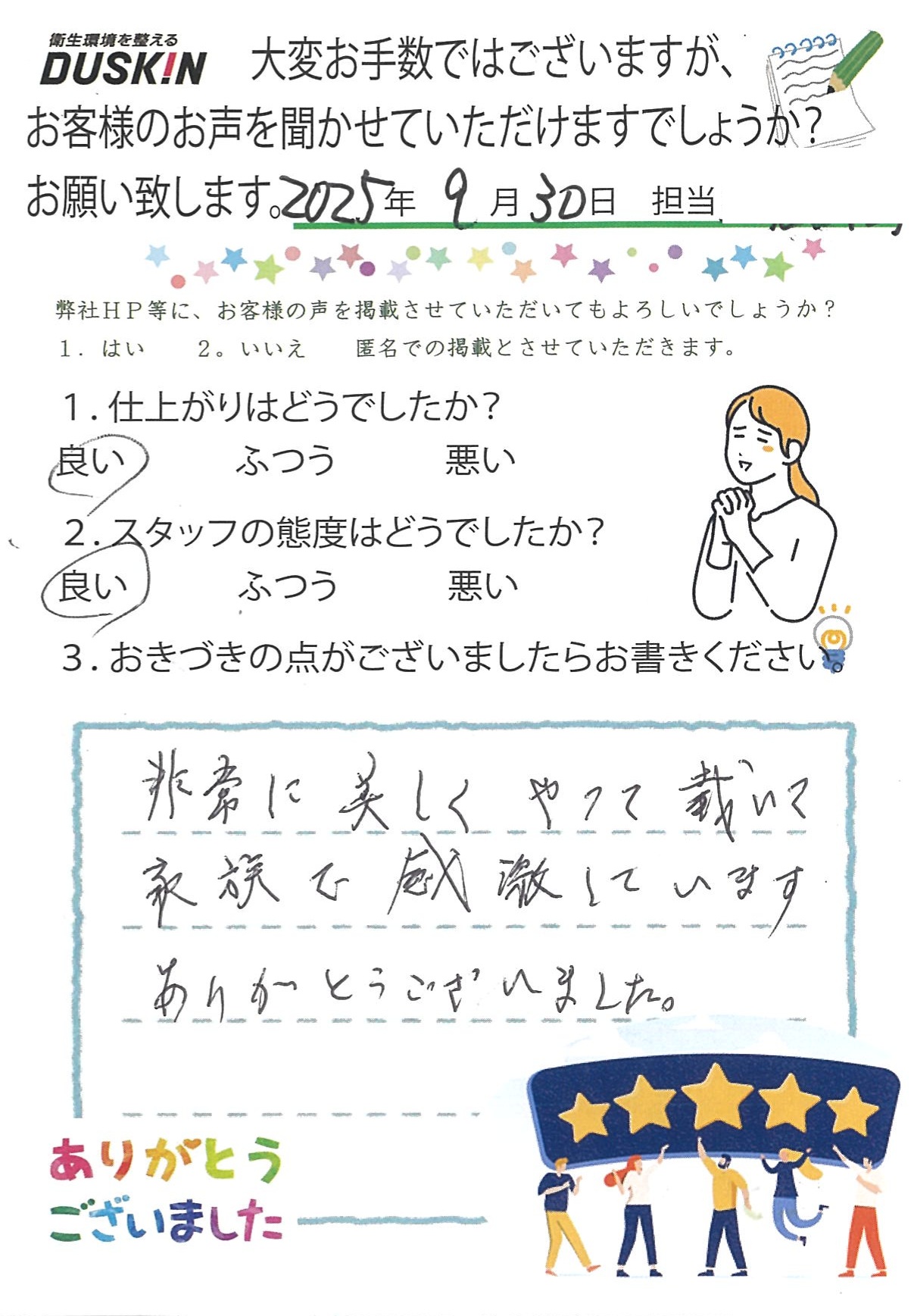 非常に美しくやって頂いて、家族で感激しています。ありがとうございました。
