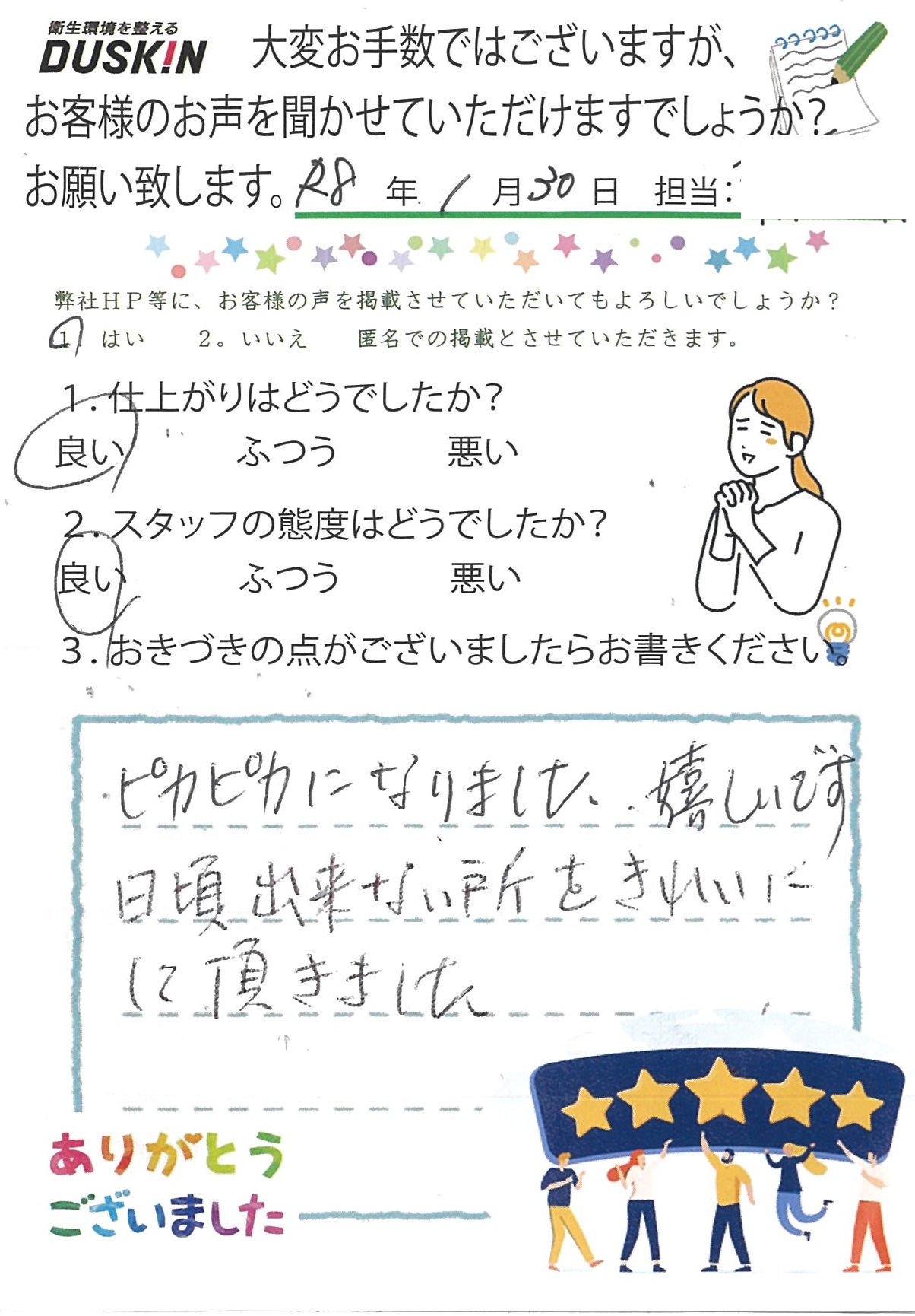 ピカピカになりました。嬉しいです。日頃出来ない所をきれいにして頂きました。