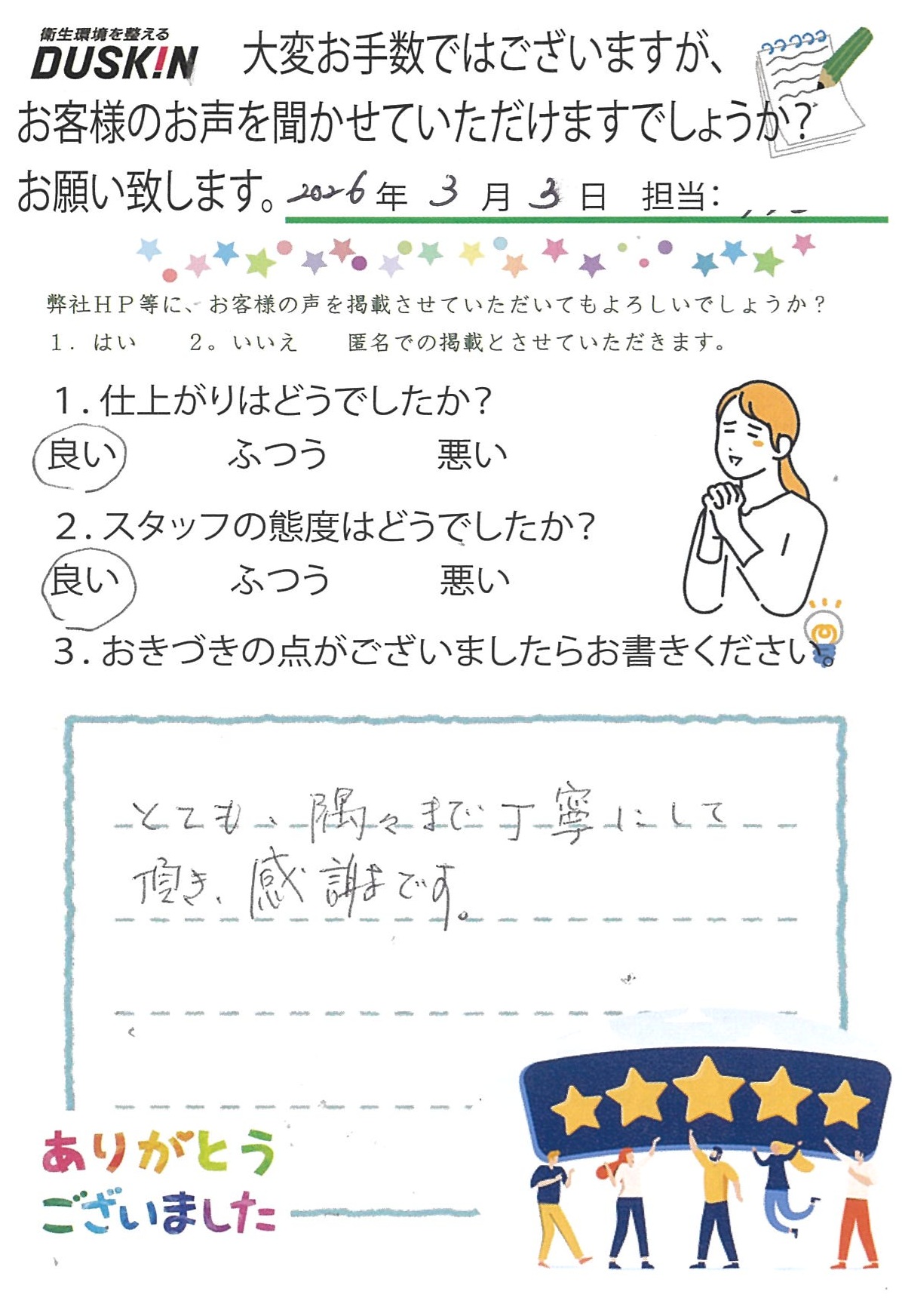 スタッフの態度はどうでしたか?