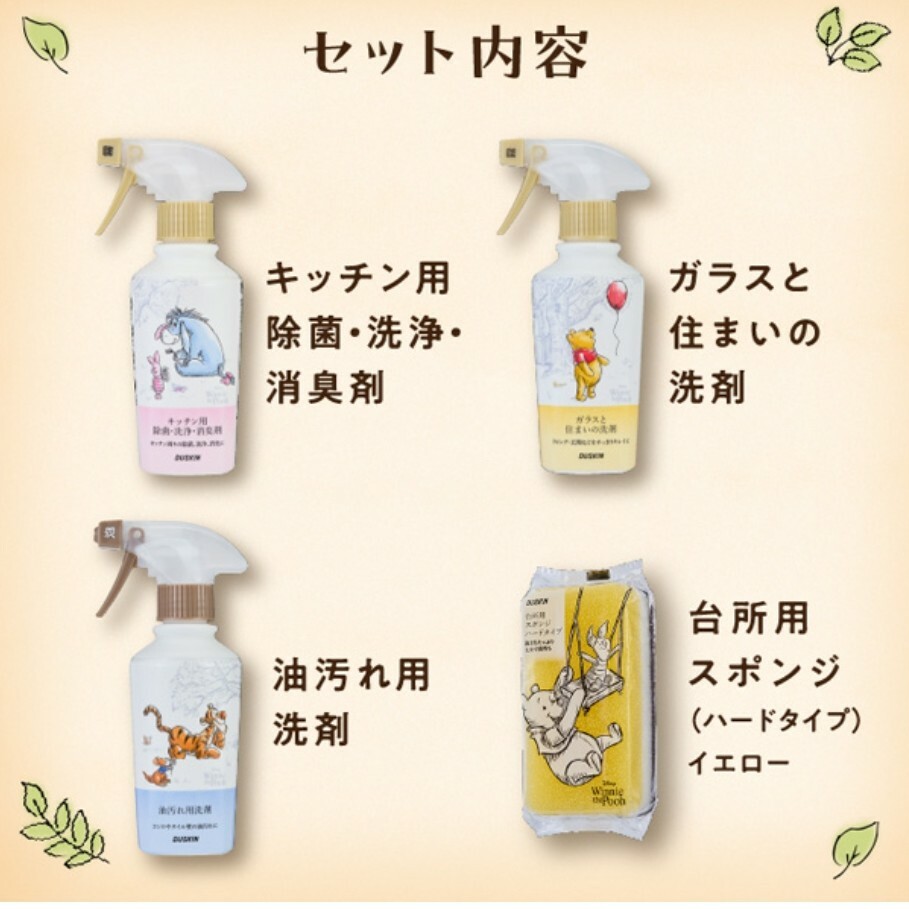 ダスキンでは今年、プーさんと仲間たちの可愛いパッケージで、手に取る度にほっこりするデザインの洗剤セットを販売します☆