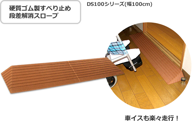 丈夫なゴム製でズレにくく、車いすや台車もスムーズに通れます。