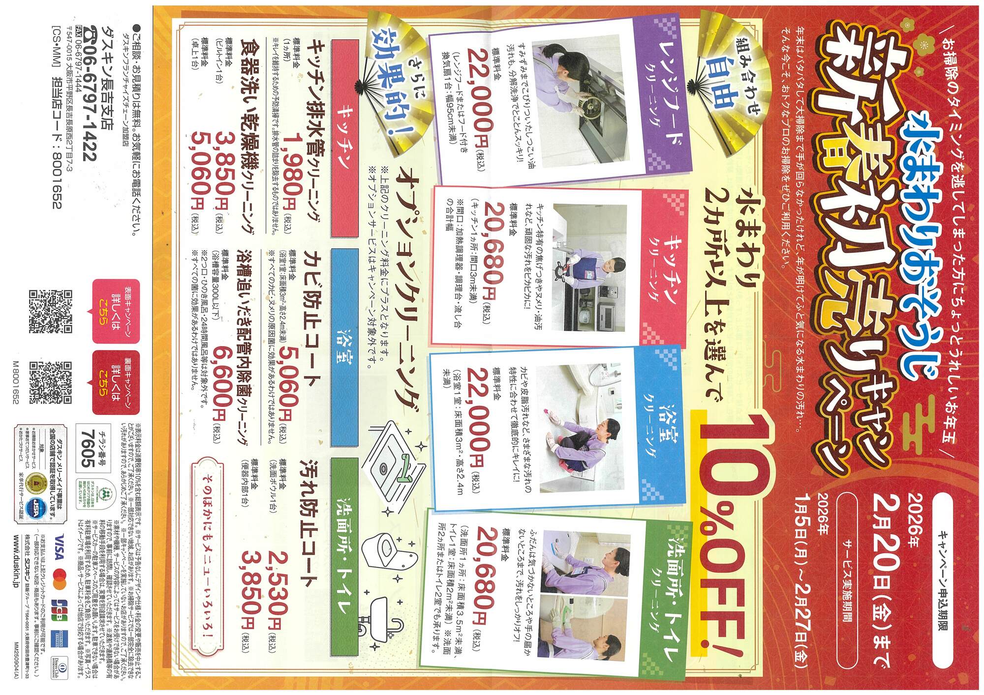 新年1/5(月)より「水まわりおそうじ新春初売りキャンペーン」が始まります。