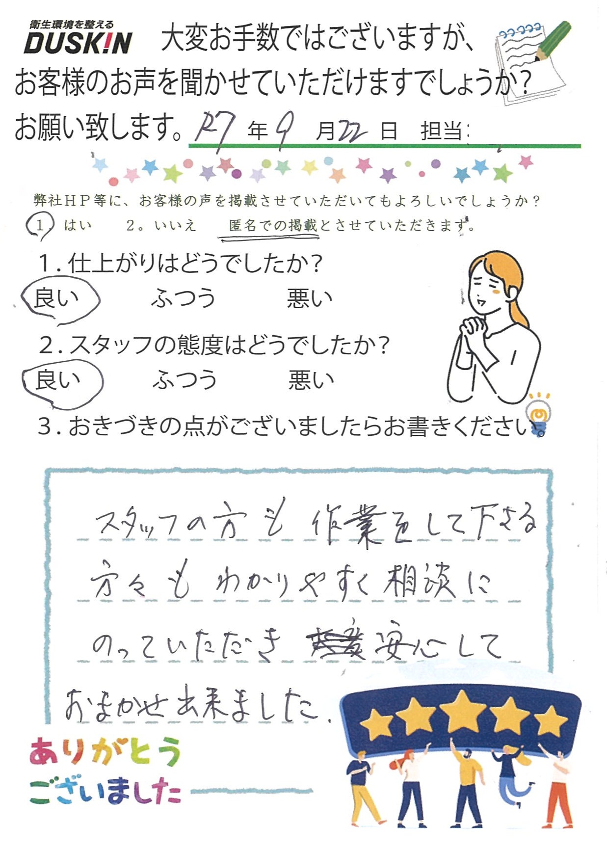 ダスキン富士せんいのスタッフがきちんと説明しますので、不安な点や疑問点があれば納得行くまで聞いてください。