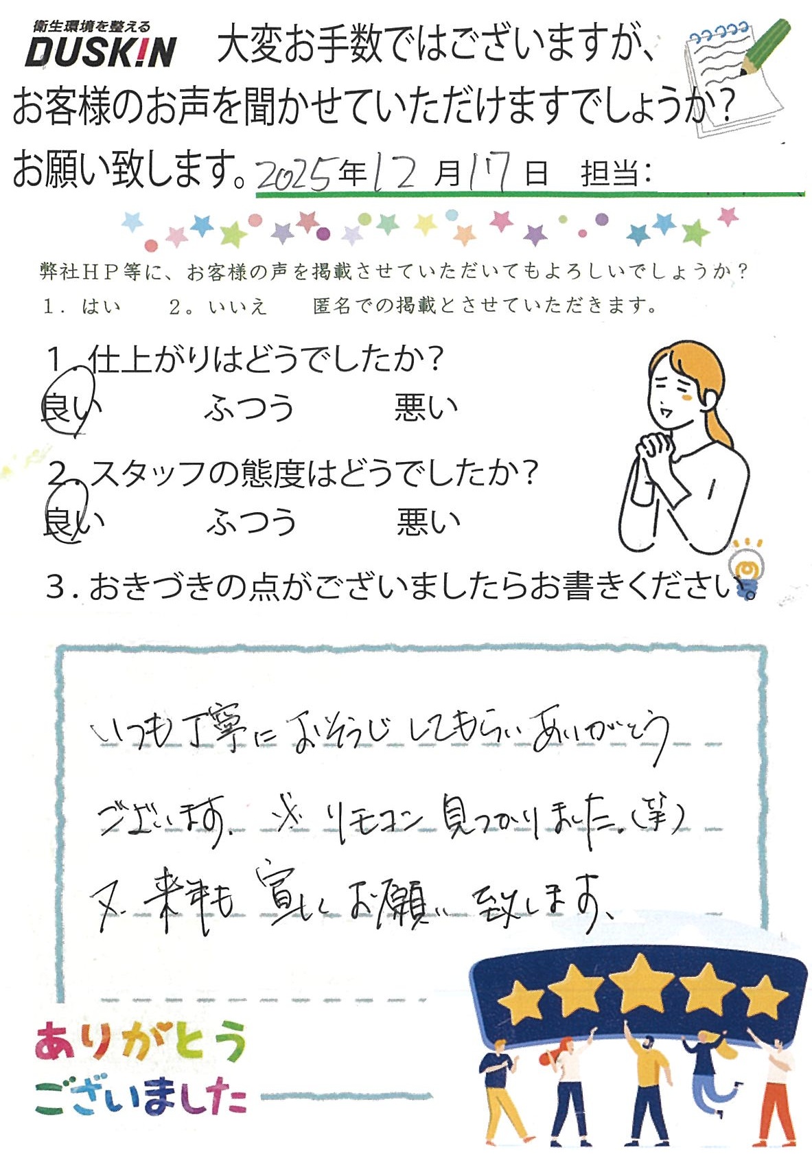 お客様の声2026/01/06平野区/O様ハウスクリーニング