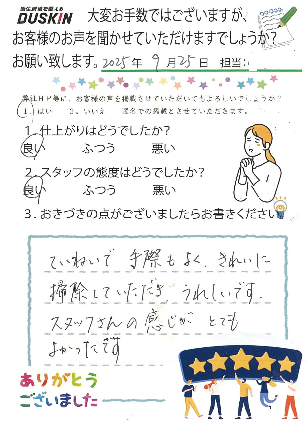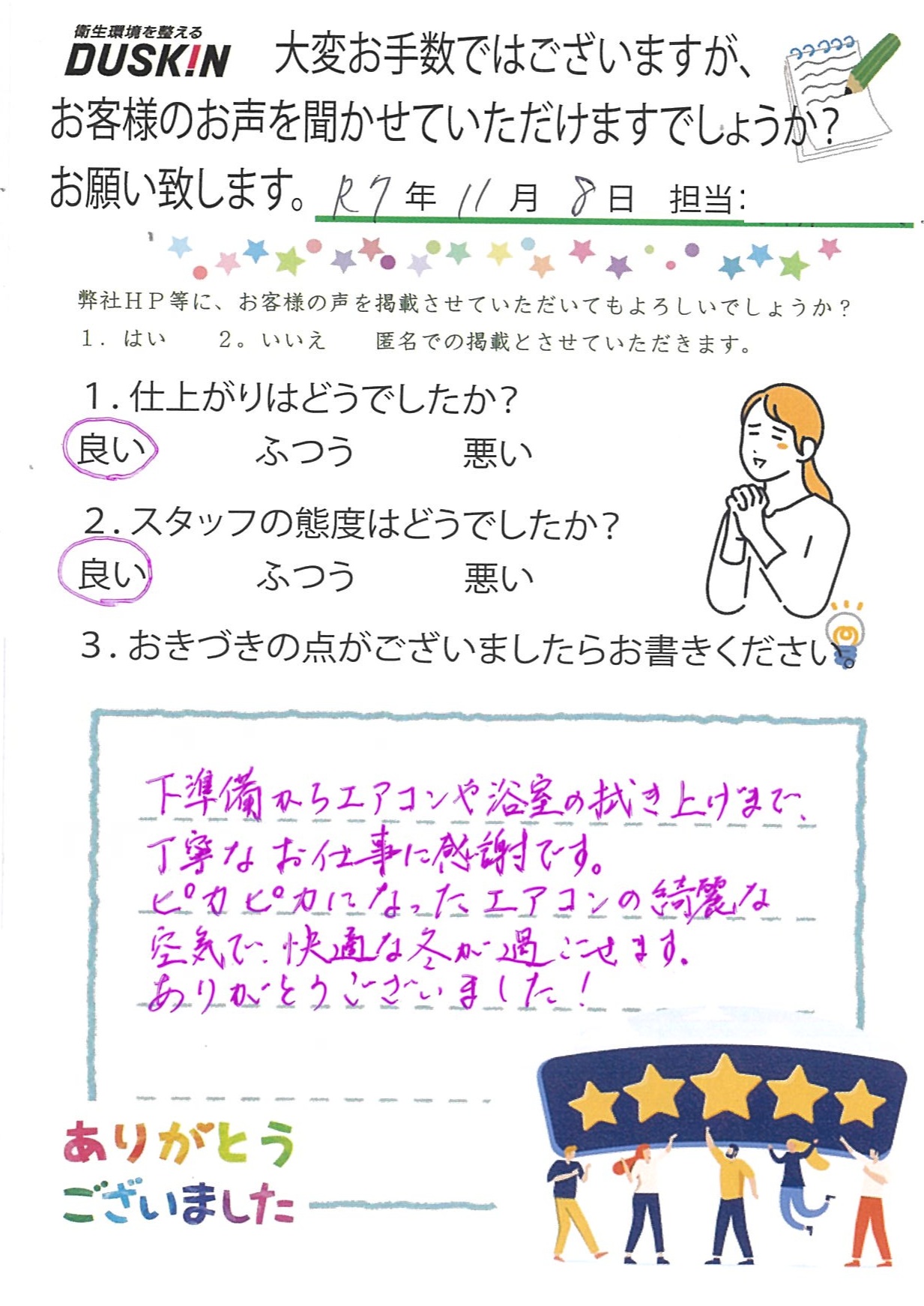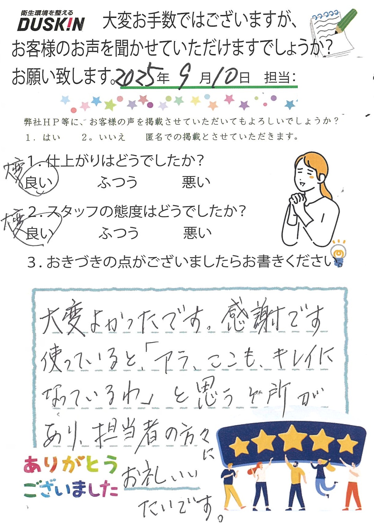 お客様の声2025/11/25東大阪市/I様ハウスクリーニング