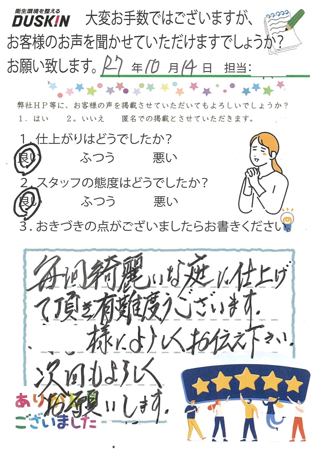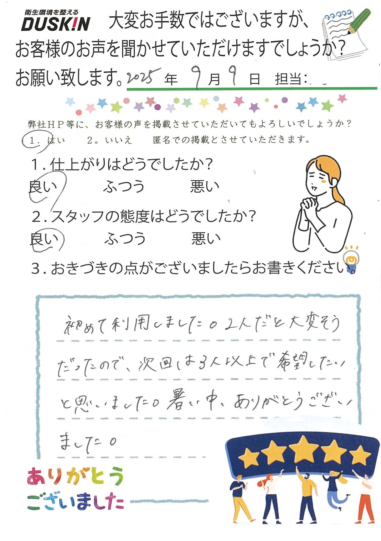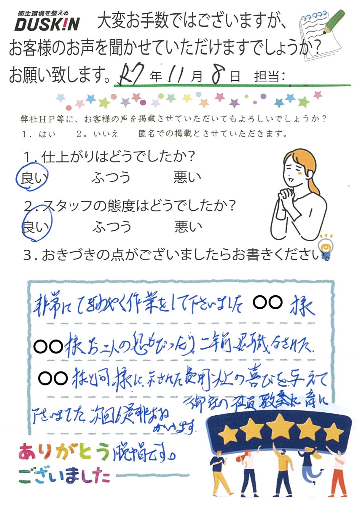 お客様の声2025/11/25東大阪市/I様ハウスクリーニング
