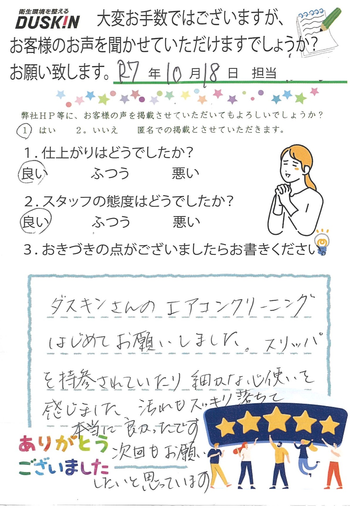 お客様の声2025/11/25阿倍野区/H様エアコンクリーニング