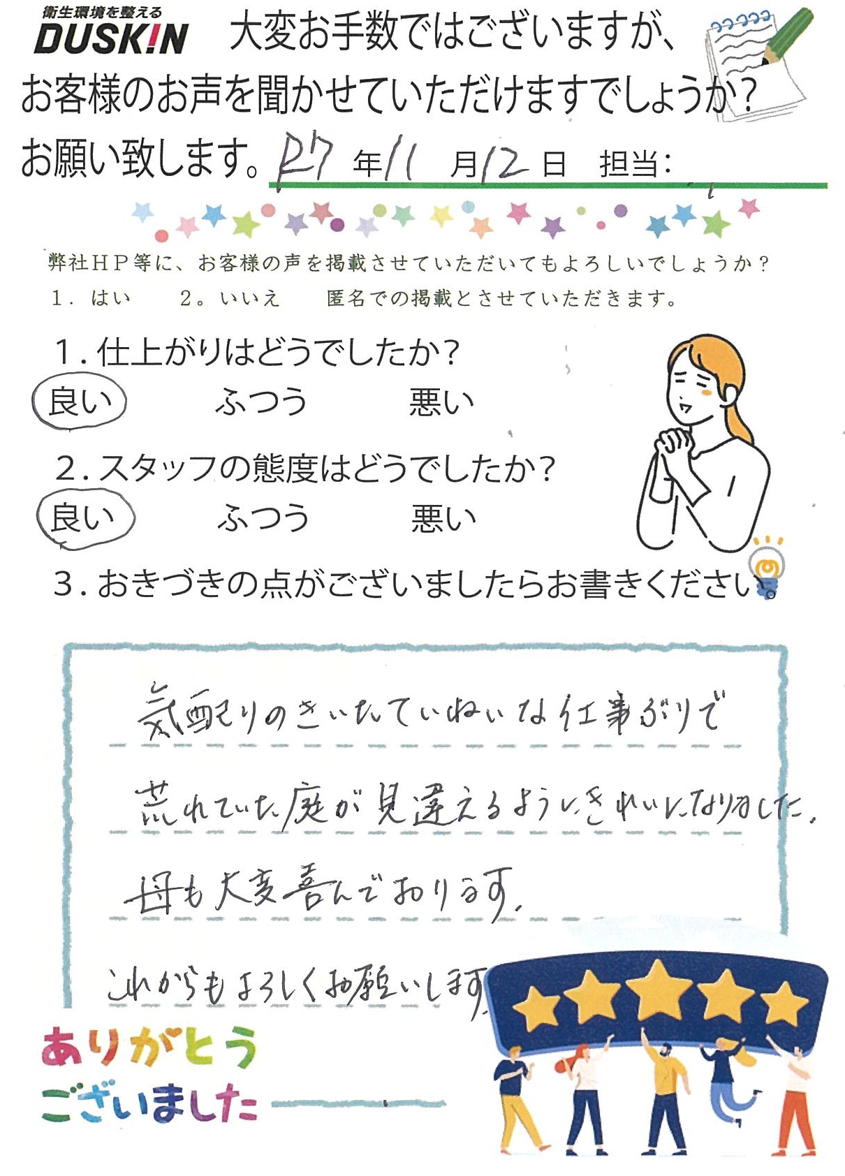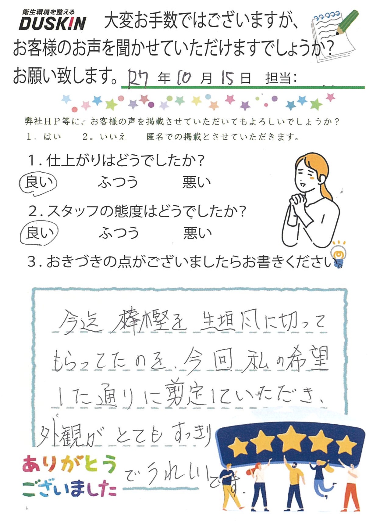 お客様の声2025/11/25平野区/O様トータルグリーン
