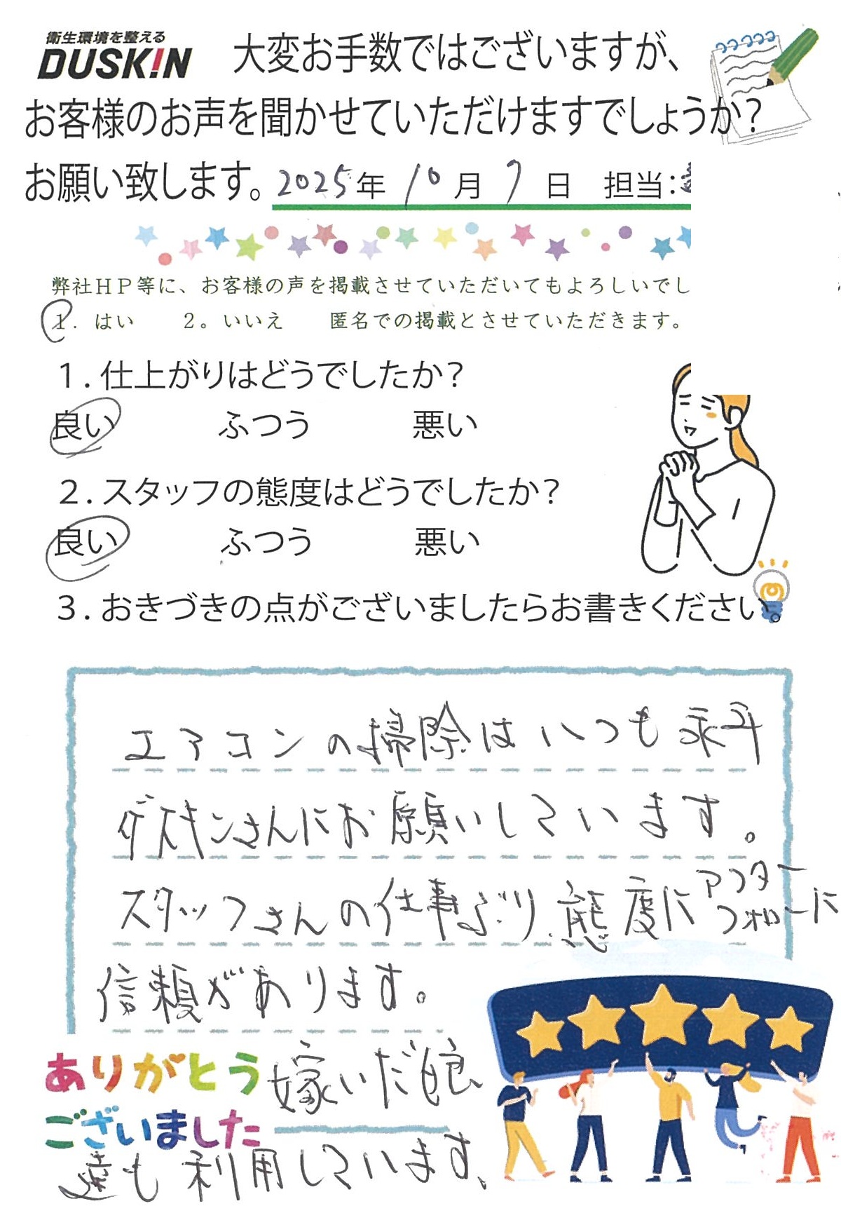 お客様の声2025/10/30平野区/Y様エアコンクリーニング