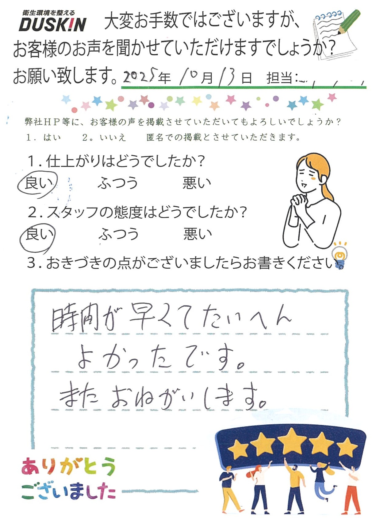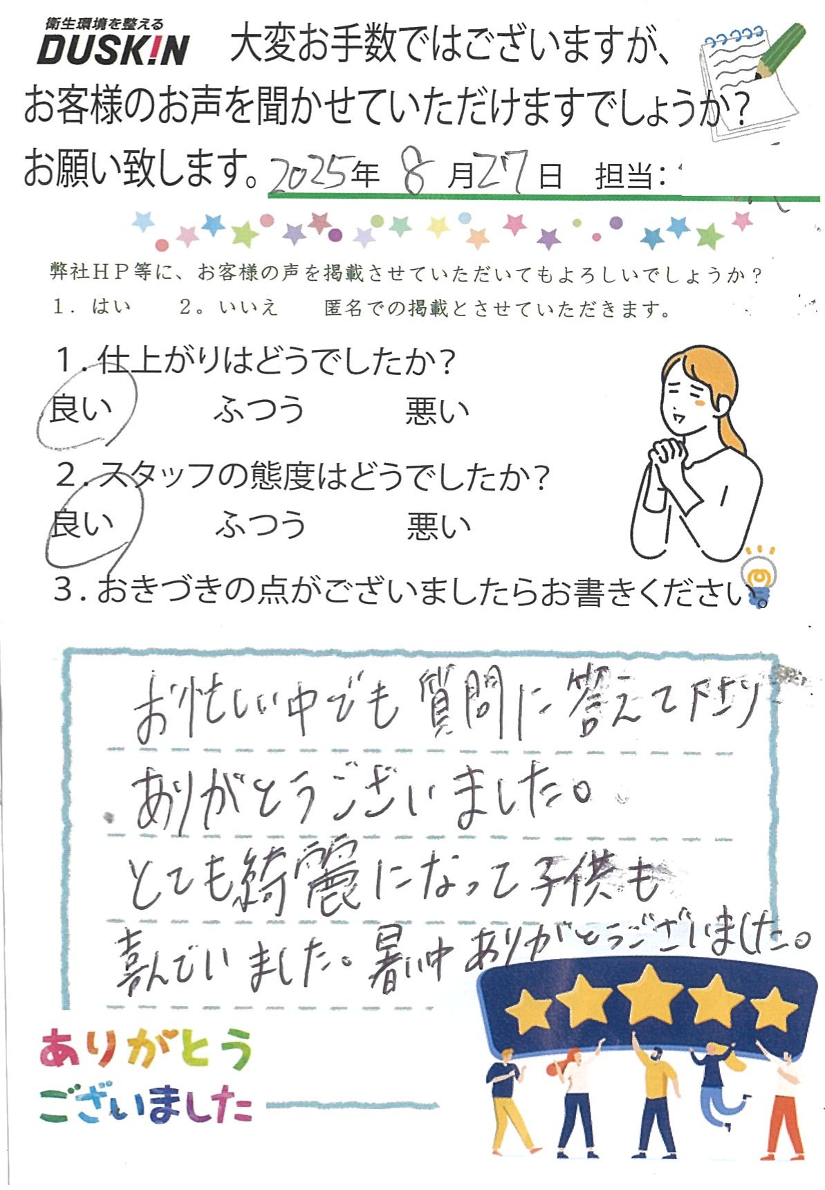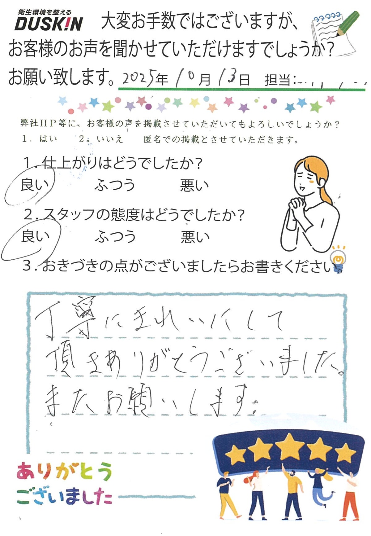 お客様の声2025/10/30八尾市/K様ハウスクリーニング