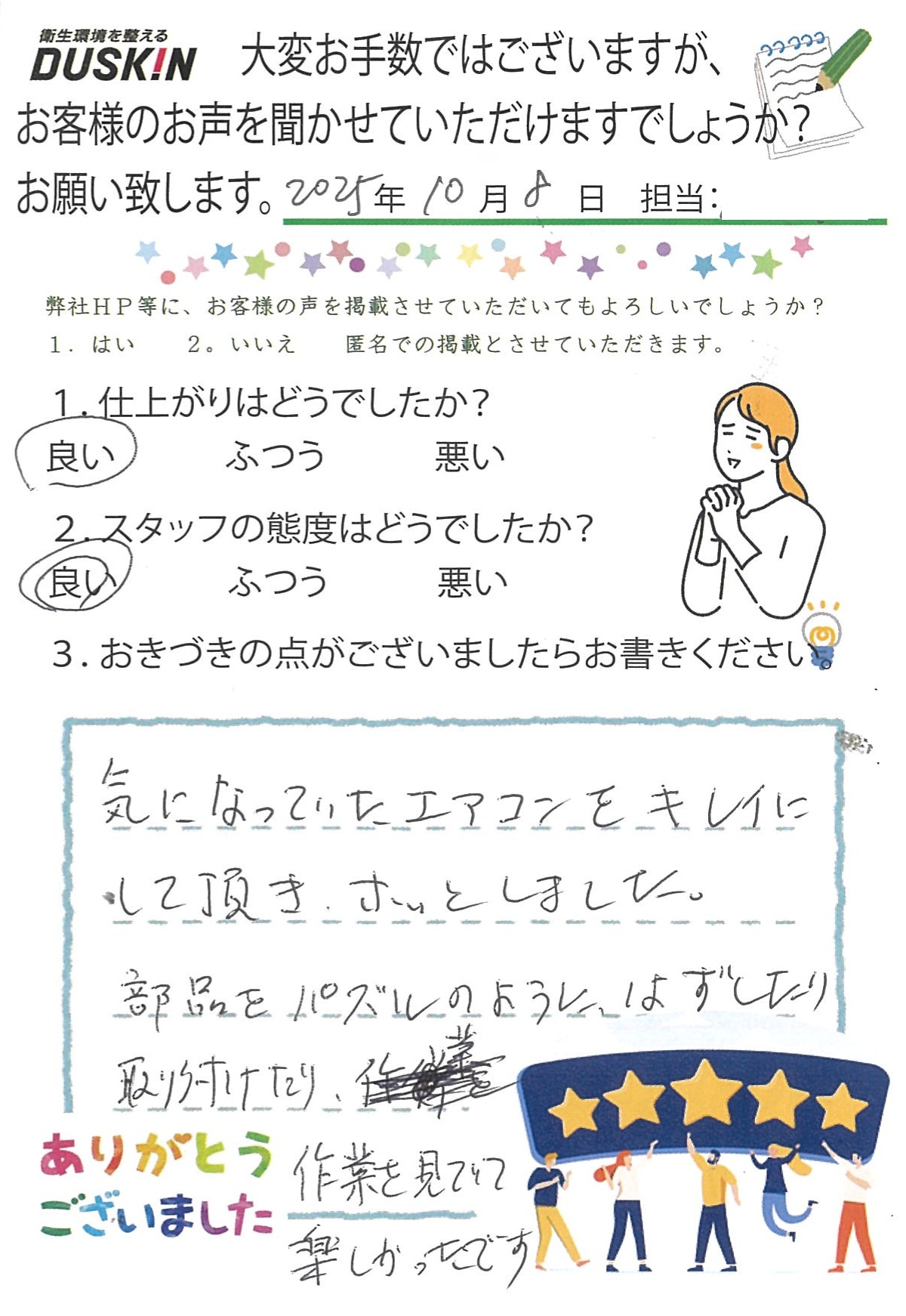 お客様の声2025/11/25阿倍野区/K様エアコンクリーニング