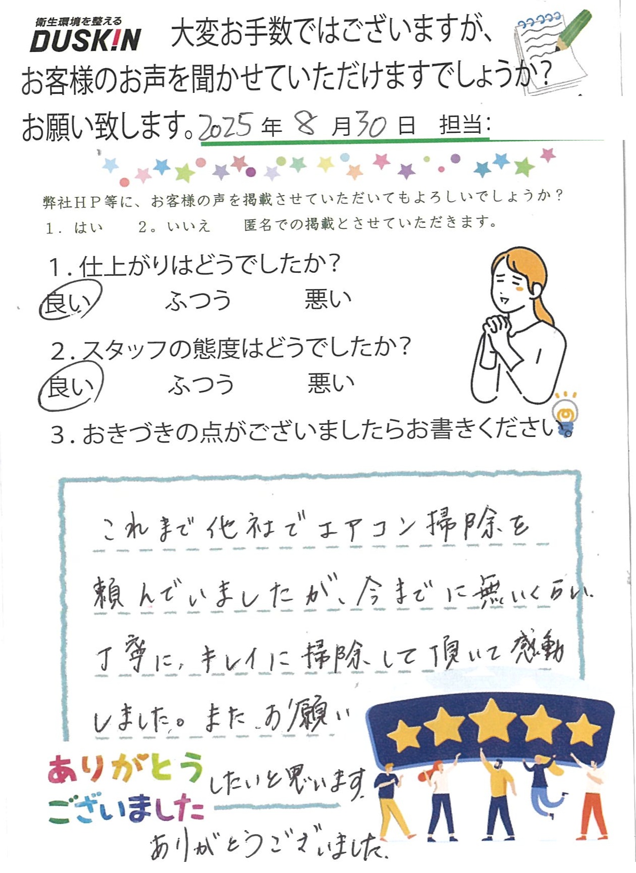 お客様の声2025/10/30中央区/S様エアコンクリーニング
