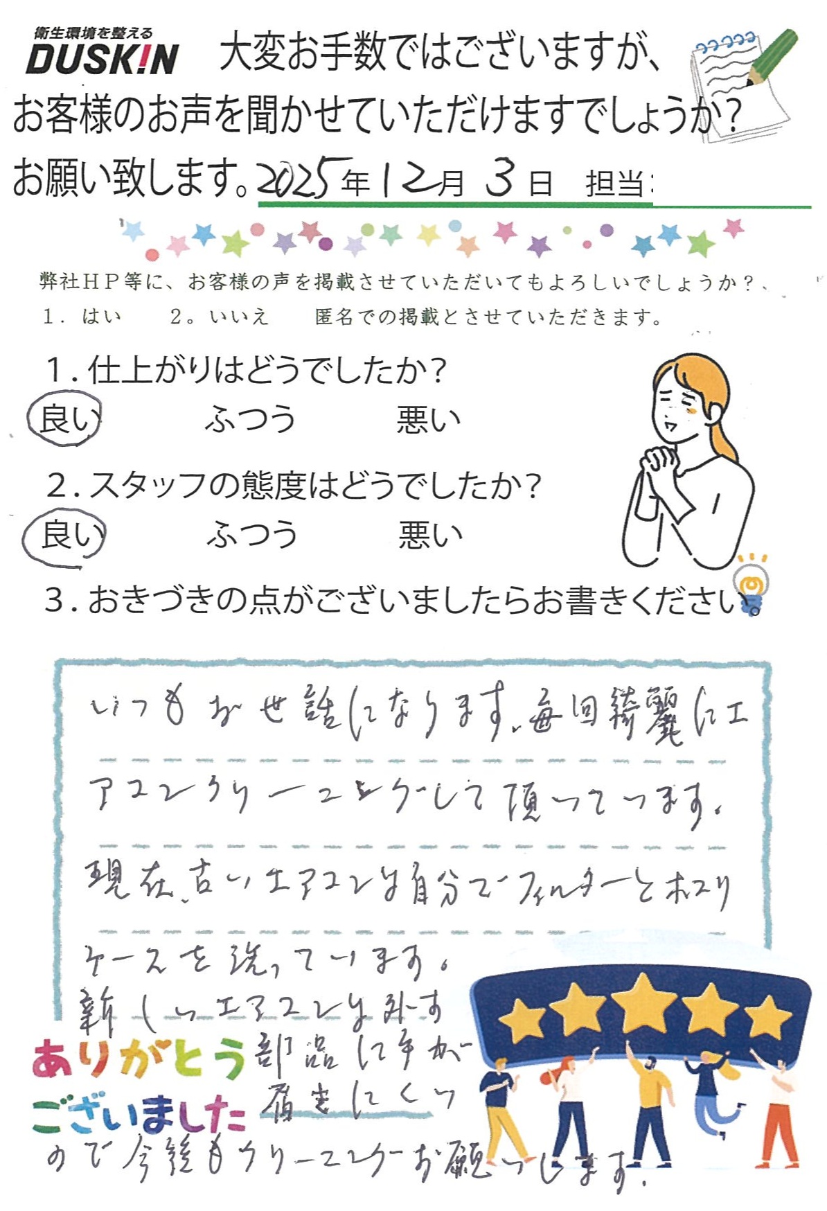 お客様の声2025/11/25阿倍野区/K様エアコンクリーニング