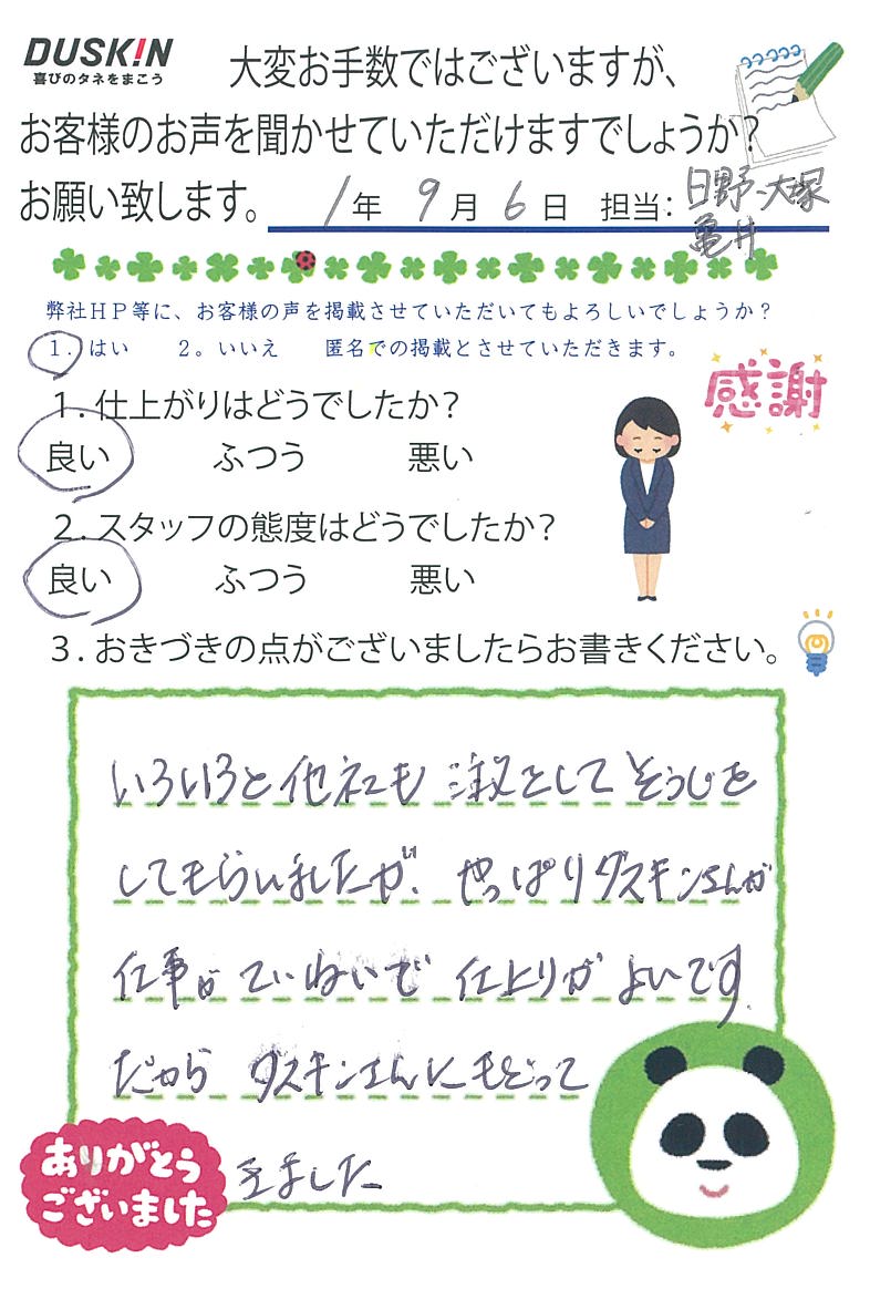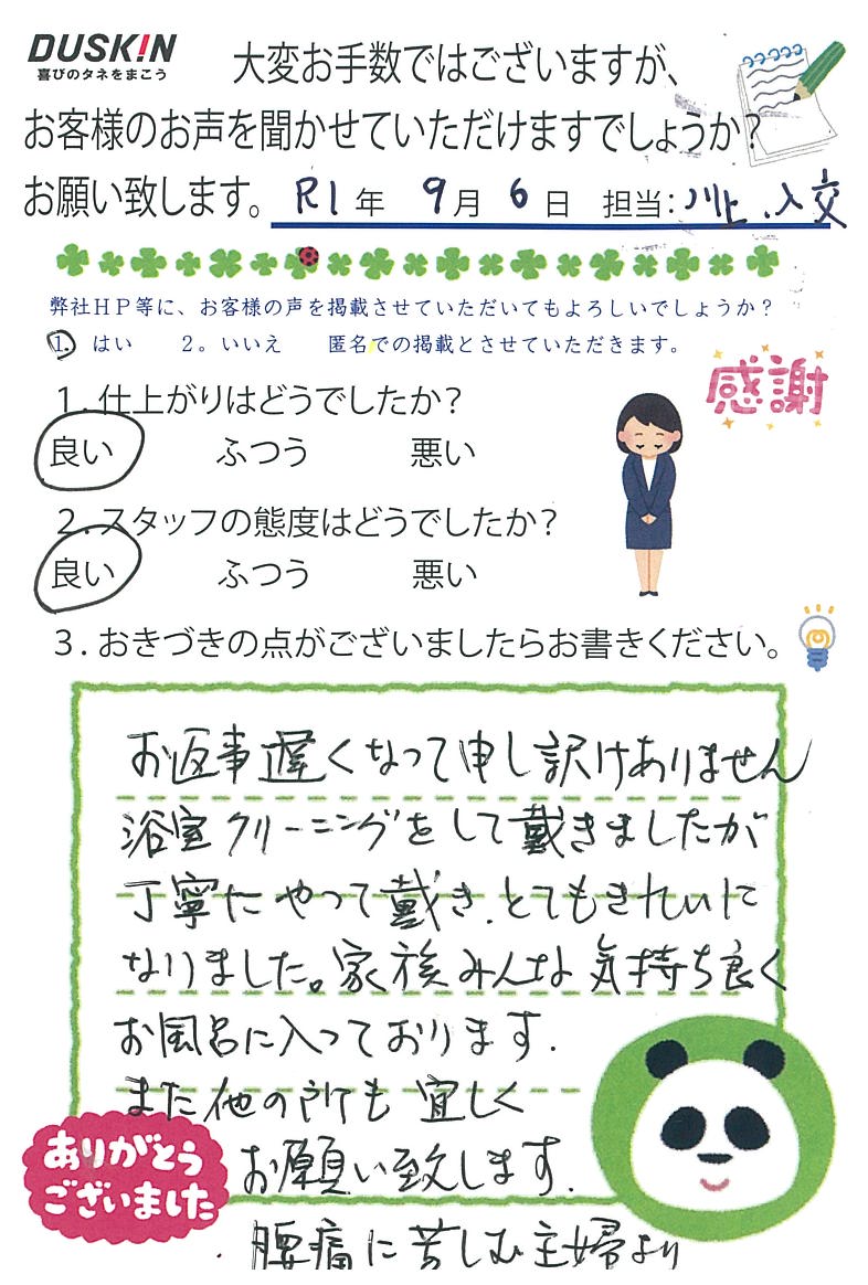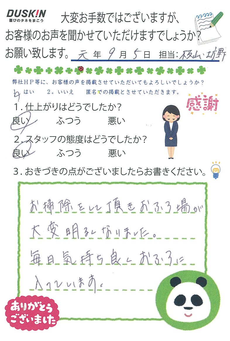 お客様の声2019/09/06八尾市/U様ハウスクリーニング