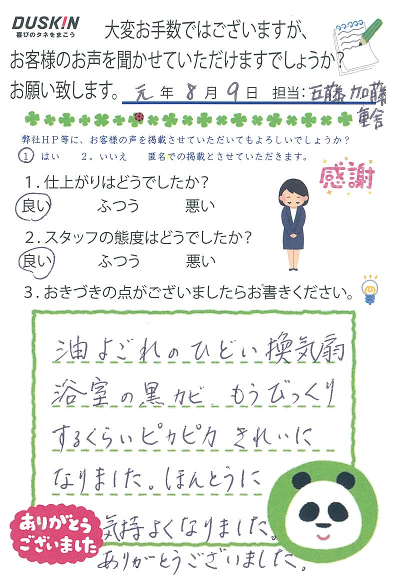 お客様の声2019/08/09八尾市/F様ハウスクリーニング
