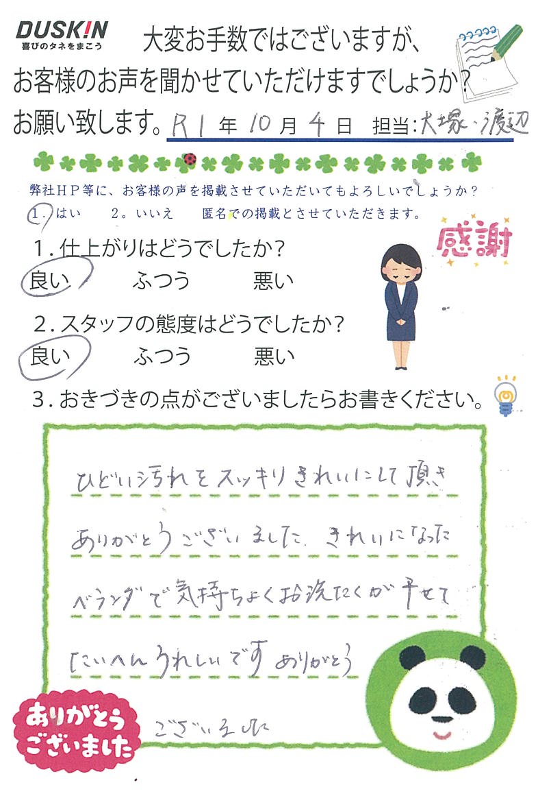 お客様の声2019/10/04大阪市/匿名様ハウスクリーニング